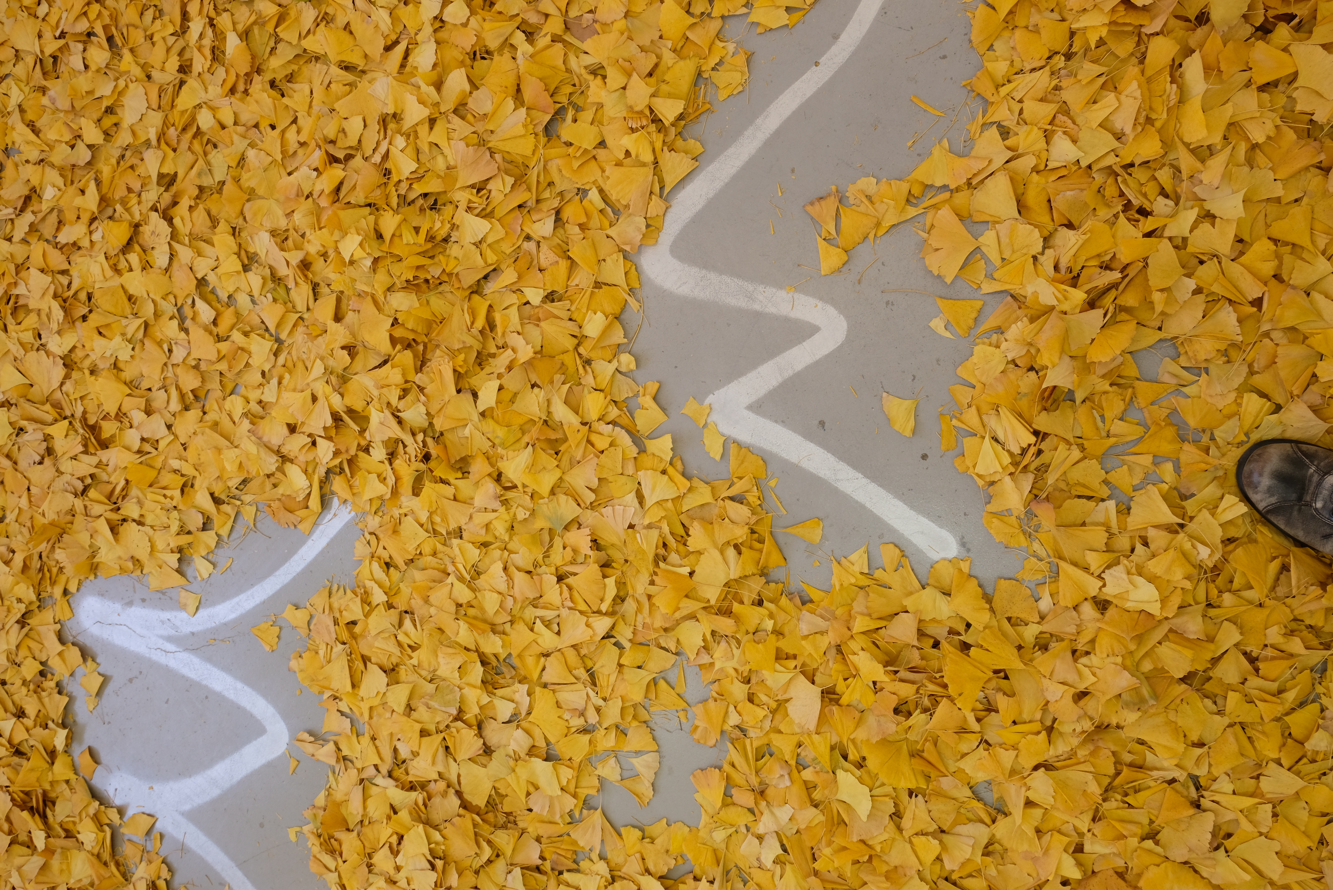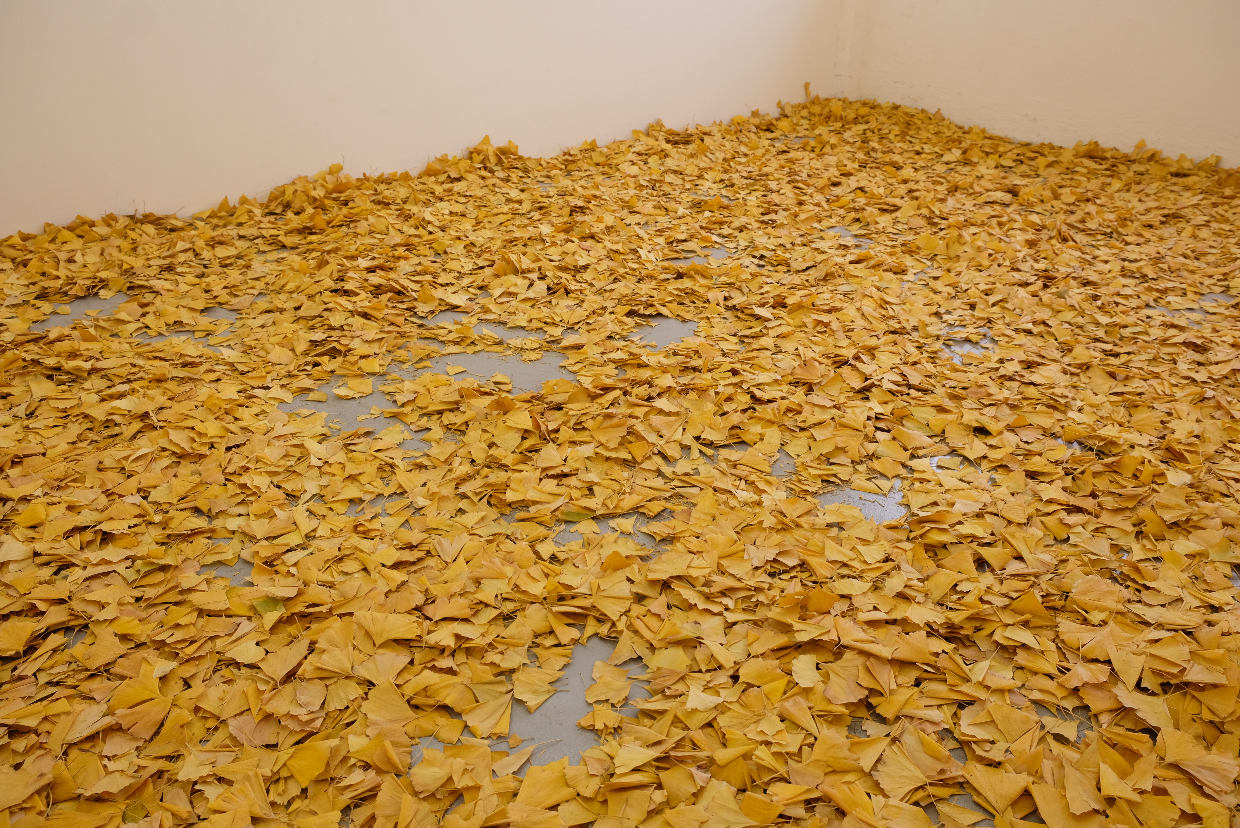 For the time being, 2016-present, ginkgo leaves, spray paint